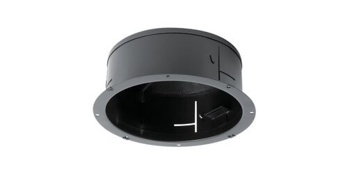 All necessary hardware is provided including a unique support system with mounting ears that telescope out from inside the enclosure and adjust vertically to accommodate ceilings with a thickness of 1/2" to 13/8". The units features CRS construction and include torsion-spring receptacles for quick mounting of torsion-spring grilles. (J-Nuts are included on the return of the enclosure to accommodate surface-mounting grilles.) backplates are made with three 1/2" conduit knockouts to allow cable access. Enclosures has sound damping material to minimize metallic resonance. This unit is finished in a textured black epoxy.Reviews