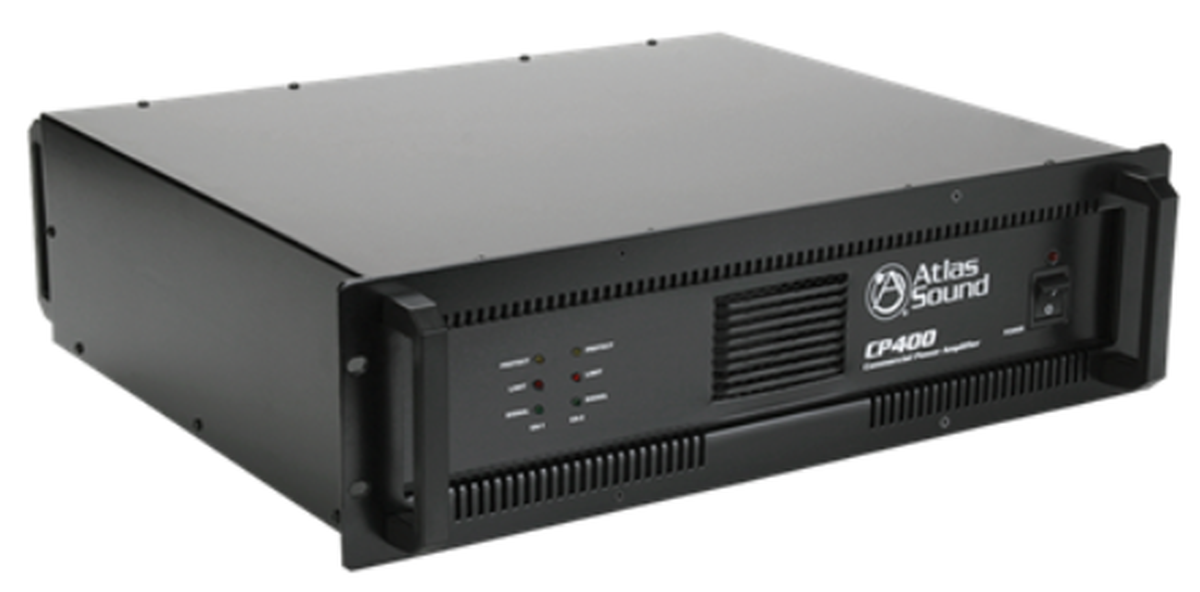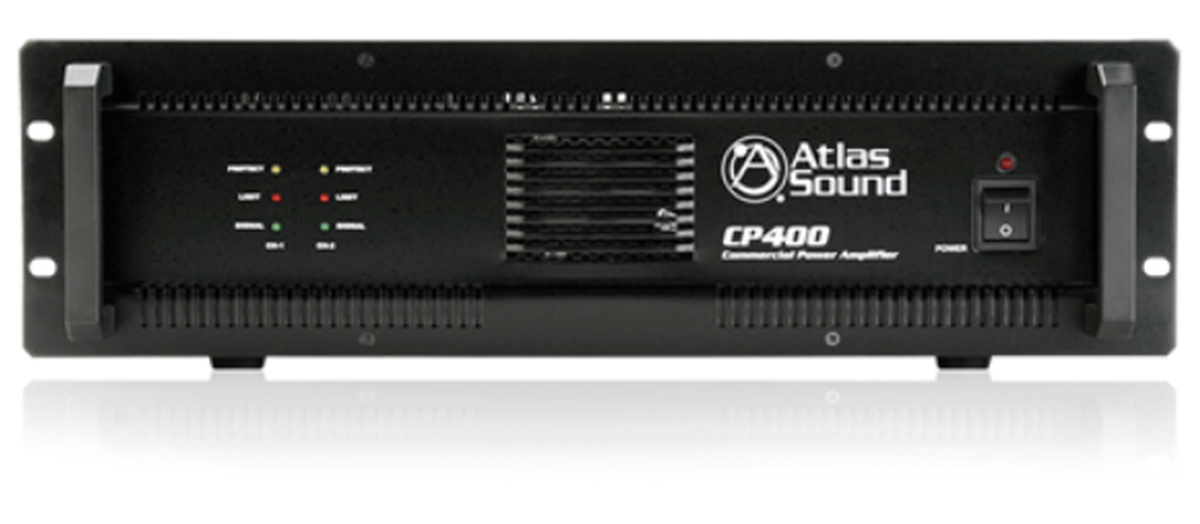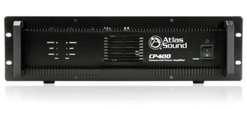 Atlas Sound's CP400 is a commercial-grade power amplifier. The CP400 is ideal for use in environments that use distributed paging/BGM systems, foreground music systems, and distributed sound masking. Additionally, this power amplifier is a great addition to AV environments like nightclubs, theaters, and portable sound systems.