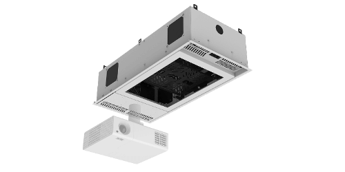 The CR212P ceiling-mounted equipment rack allows electronic equipment to be conveniently installed out of sight, in the ceiling plenum. The CR Series provides a space-saving solution while also being aesthetically discrete, blending in with common drop-ceiling tile designs. They permit equipment to be securely mounted above the ceiling in a sealed UL plenum-rated cabinet with an easy access door. The door assembly has an open frame design so the installer can place a ceiling tile into the frame and better conceal the entire ceiling rack. The ceiling tile cut-out is safely held in place by retainer tabs, locking it to the frame. To open the door, two retention thumb screws can be removed, and the door has attached safety cables to protect against injury.The CR212P provides 2RU with a 9.25" half-width to accommodate compact half-rack equipment. The enclosure is 1' x 2' to fit a half space of a standard ceiling tile grid. As an option, a rack rail kit can be purchased for installing rack mount installable electronic equipment. The optional CR212RR rack rail provides two rack units (2RU)AmbiTILT - Easily load and service equipmentAn AtlasIED advantage is the AmbiTILT mechanism with three methods to easily load and service equipment. For the first method, the shelf system has quick-release cane bolts. The two-(2) front cane bolts can be released and the entire shelf will tilt down towards the front. The shelf assembly is held in place by two safety cables and the two rear cane bolts. Being an ambidextrous design, the two-(2) rear cane bolts can be released in the same fashion and the rear section of the shelf will tilt downward for quick access to equipment's rear connectors. The third option allows an integrator to completely remove the entire shelf system by releasing the front and rear cane bolts followed by releasing the two safety cables via the quick-release locking pins.Precision Projector Pole AdapterThe two different sizes also provide a choice for an integrated pole adapter for easily mounting a projector underneath from a standard 11/2" threaded pole. To ensure the projector properly aligns to the center of the projection screen, AtlasIED provides the precision system. In the 1' x 2' enclosures, three knockout choices are provided so the installer can precisely choose which knockout best aligns the projector to the center of the projection screen. Once chosen, the installer opens the chosen hole and installs the provided pole plate adapter. Now, it is ready to thread in the pole and mount the projector. For the 2' x 2' enclosure, there are five precision knockout locations provided. To ensure the pole is safely secured in place, the CR Series incorporates a locking screw mechanism.Integrated AC Power Pack with PowerAWAKE Auto On-OffThe CR212P incorporates an integrated UL-listed power pack for powering the mounted electronic devices and data projector. There are five-(5) electrical outlets provided with standard 15 Amp Edison-style plugs. Four-(4) electrical outlets are located inside the cabinet and one-(1) outlet faces down and remains exposed when the door is shut. This allows a projector to be easily powered.The CR212P's power pack has an AtlasIED innovation called PowerAWAKE. This provides a sensing circuit that automatically turns power on or off to devices inside the cabinet. This extends their life span and can effortlessly save electricity. The CR212P's exposed outlet is constantly on and incorporates a sensing circuit. When a projector is plugged into this outlet, and powered on by a user with a remote, the PowerAWAKE circuit will detect the electrical current draw and automatically turn on the rest of the outlets and the fan assembly. Now all devices are powered on or off by the projector remote. The PowerAWAKE pack has sensing circuits in two outlets that always stay on. They are the exposed outlet and the first outlet inside the cabinet. The remaining three outlets are toggled automatically by the PowerAWAKE circuit.The power supplies incorporate a whisper quiet fan assembly (24dBSPL A-weighted) for equipment cooling.Multiple Punch-Outs for Electrical and A/V ConnectorsThe CR212P is built "Texas Tough" in AtlasIED's Texas-based manufacturing facility. Proudly made in America and built to last, 18AWG powder coated metal provides a strong and rigid assembly with decades of operational use. Another AtlasIED advantage, the cabinet side panels include four-(4) removable 4" square standard cover plates. There are two per side and each side has one cover plate with a single 11/2" knockout and the other plate with two double knockouts for 1/2" or 3/4" conduit connection. The provided cover plates can be replaced with an installer-provided custom plate with connectors such as an Ethernet jack, HDMI jack, NL4, XLR, RCA connectors and much more.Multiple Installation Mounting OptionsAtlasIED provides three mounting methods.The first method is by suspension from threaded rod via AtlasIED's optional threaded rod rail kit. The kit includes two mounting bars and hardware for attachment to the enclosure. The bars provide holes to attach threaded rods with bolts supplied by a qualified installer. This is the preferred method as it keeps the whole assembly the most stable. Note: The threaded rod, bolts, and clamps are not included in the kit, they are sold separately. CR212TRK - For use in the CR212P Series cabinetsThe second method is by suspension cables via AtlasIED's optional cable mounting kit. The kit includes four-(4) aircraft cables, thimbles, and crimp sleeves. The kit also includes four-(4) quick adjustment cable locks allowing quick cable length adjustments and cabinet leveling. CR2CK - Works for all models.The last method is using third party mounting accessories. The cabinet comes with extruded mounting ears for attachment points.