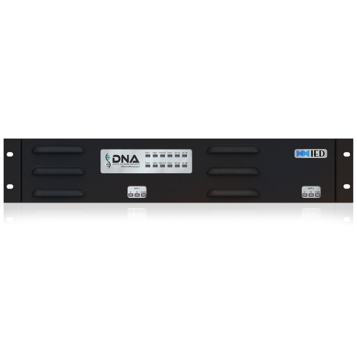 The DNA2404DL amplifier is an integral part of the IED GLOBALCOM Communications System, allowing a few audio zones to be added where necessary when a full 16-zone T9160 amplifier frame is not required. The amplifier features Audinate's Dante digital audio input and four channels of 600 watt amplification. The DNA2404DL is controlled with network commands for selecting input routing and configuring EQ, delay and output levels. Amplifiers may be controlled by a stand-alone GLOBALCOM configuration utility or through the GLOBALCOM System Management Center.