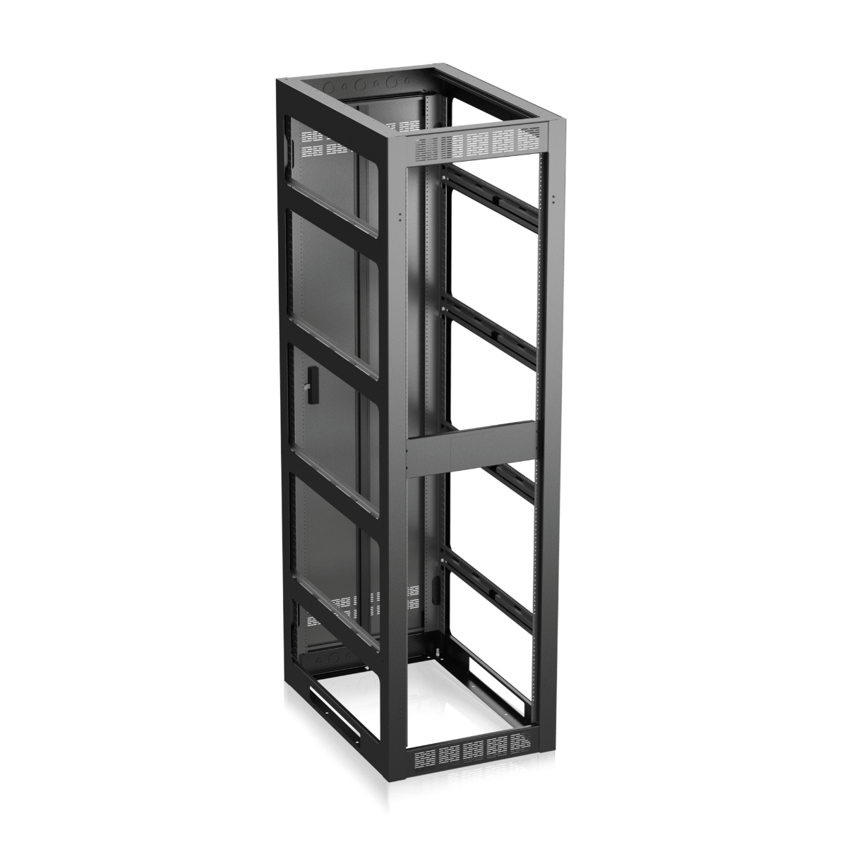 The AtlasIED FMA44-32G (gangable) was designed with contractor input to meet storage and wire management needs for today and into the future. The unit features increased width for better wire management, and includes rear door. Construction for tops/bottoms/frames is 14-gauge steel. Hat sections provide rail slots and retainer holes for extra strength and two pairs of 12-gauge CRS adjustable mounting rails plated, drilled and tapped 10-32 with hash marks to indicate rack unit increments are included. Holes for optional surface doors are pre-drilled with threaded inserts factory installed to allow doors to be mounted after equipment is loaded. Hat sections are sized to facilitate standard 19" panels -handy for mounting "stick-on" modules and other hardware. Knock outs are provided on removable standard 2U panels (rear of cabinet top & bottom). These panels includes 3/8" KOs for BNC connectors (perfect for diversity wireless systems).