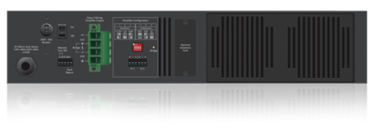 - 70.7V/100V and 2Ω, 4Ω, and 8Ω Output