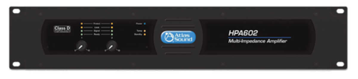 Atlas Sound's HPA602 is a dual-channel commercial high-power amplifier. This amplifier is ideal for use in commercial distributed systems (70V/100V) as well as professional environments that require 8Ω and 4Ω loads. The HPA602 is a terrific fit in nightclub environments, houses of worship, convention center, hotels, and retail stores.