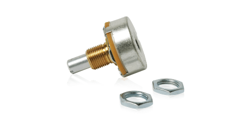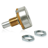 50 Ohm Wirewound Potentiometer, 3 Watt. Continuous Rotation. 3/8 " Bushing Length; 3/8 " Long Flatted Shaft. Includes Mounting Hardware