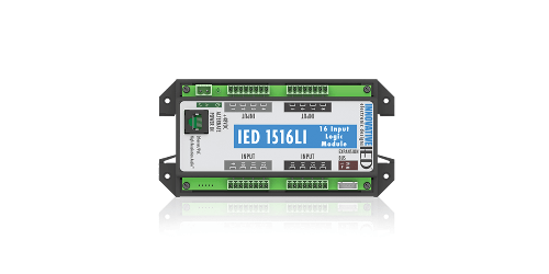 The 1516LI is a network logic input device used to interface with an IED GLOBALCOM announcement control system. It provides 16 optically-isolated inputs that can be driven using dry contact closures or 0 to 50VDC logic signals. A green LED is provided above each input that illuminates when activated. The announcement controller is configured using the GLOBALCOM System Management Center software where logic inputs can be used to launch announcements, pre-recorded messages, events, or fault reports.