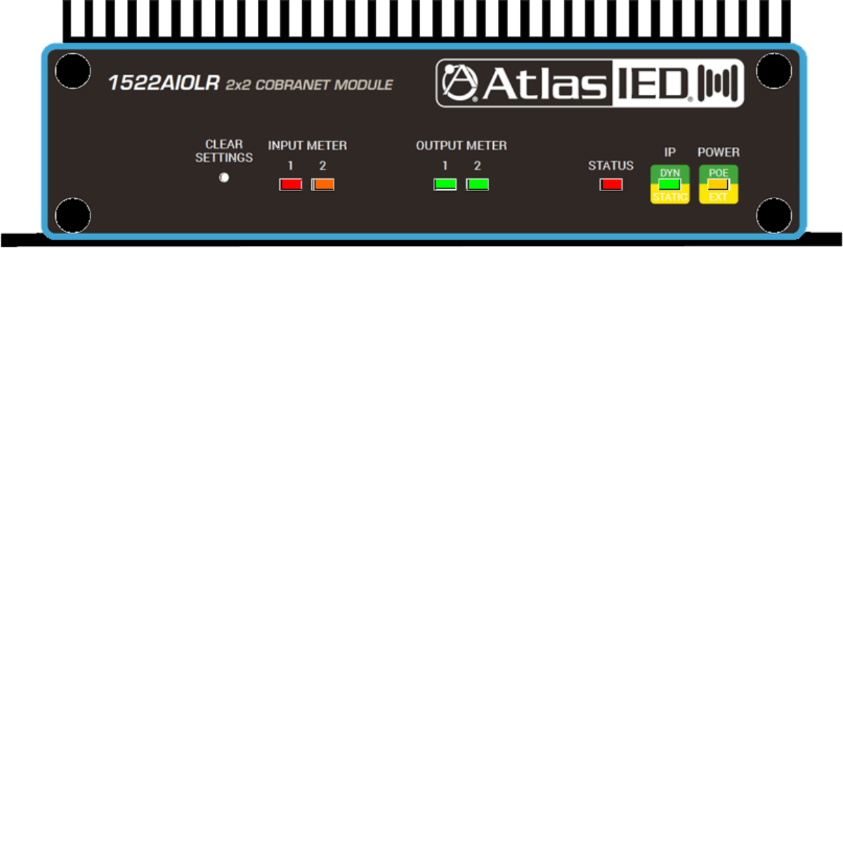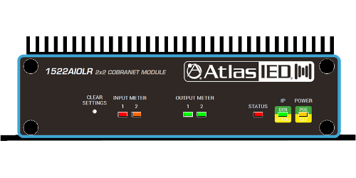 The IED1522AIOLR 2x2 CobraNet Audio I/O Module is a CobraNet interface for use in the professionally installed sound market. The IED1522AIOLR receives CobraNet network audio and sends them to two balanced analog audio outputs while simultaneously inputting two channels of mic/line level balanced audio and transmitting them as CobraNet network audio. The IED1522AIOLR is perfect for applications requiring additional inputs or outputs to an existing CobraNet system.