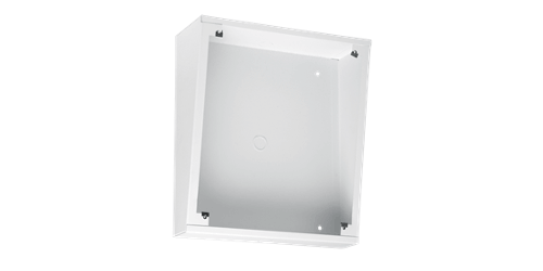 Angled surface mount enclosure is designed for use only with AtlasIED speaker system model IP-SM. The angled front design allows for directional sound dispersion. The enclosure is constructed of 20-gauge CRS and finished in textured white epoxy.