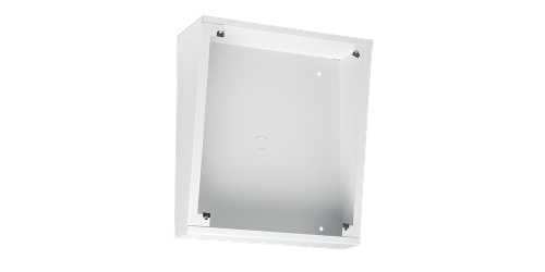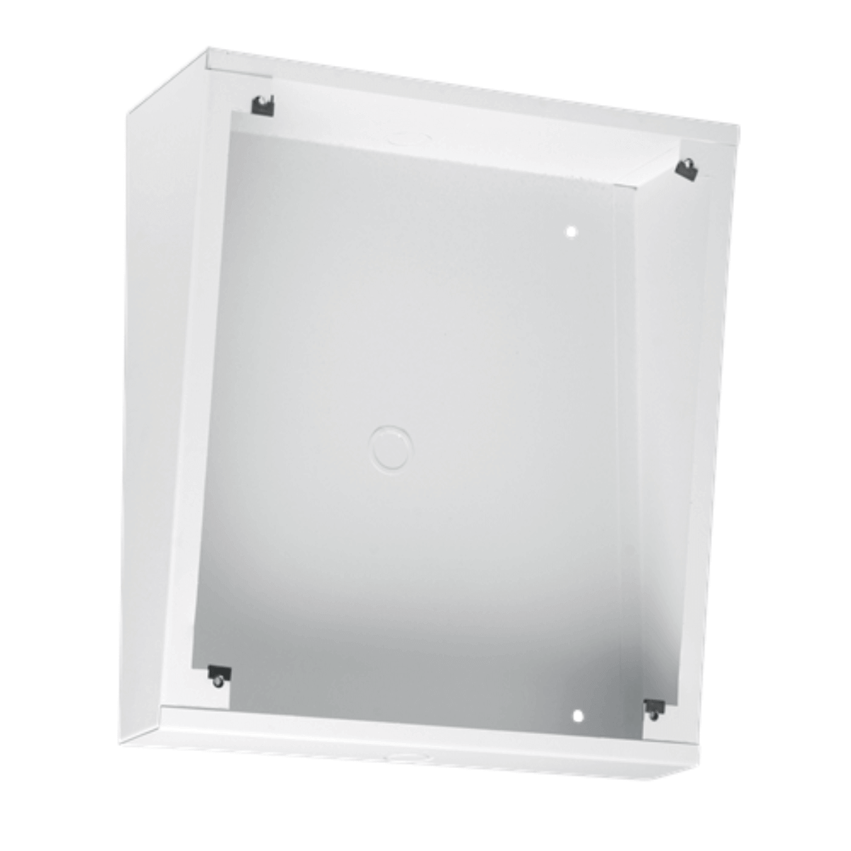 Angled enclosure designed for use only with AtlasIED speaker system models IP-8SCM, IP-SDM, IP-SDMF, IP-SDH , IP-SDM, and IP-SDMFLED. The angled front design allows for directional sound dispersion. The enclosure is constructed of 20-gauge CRS and finished in textured white epoxy.