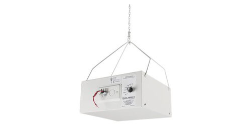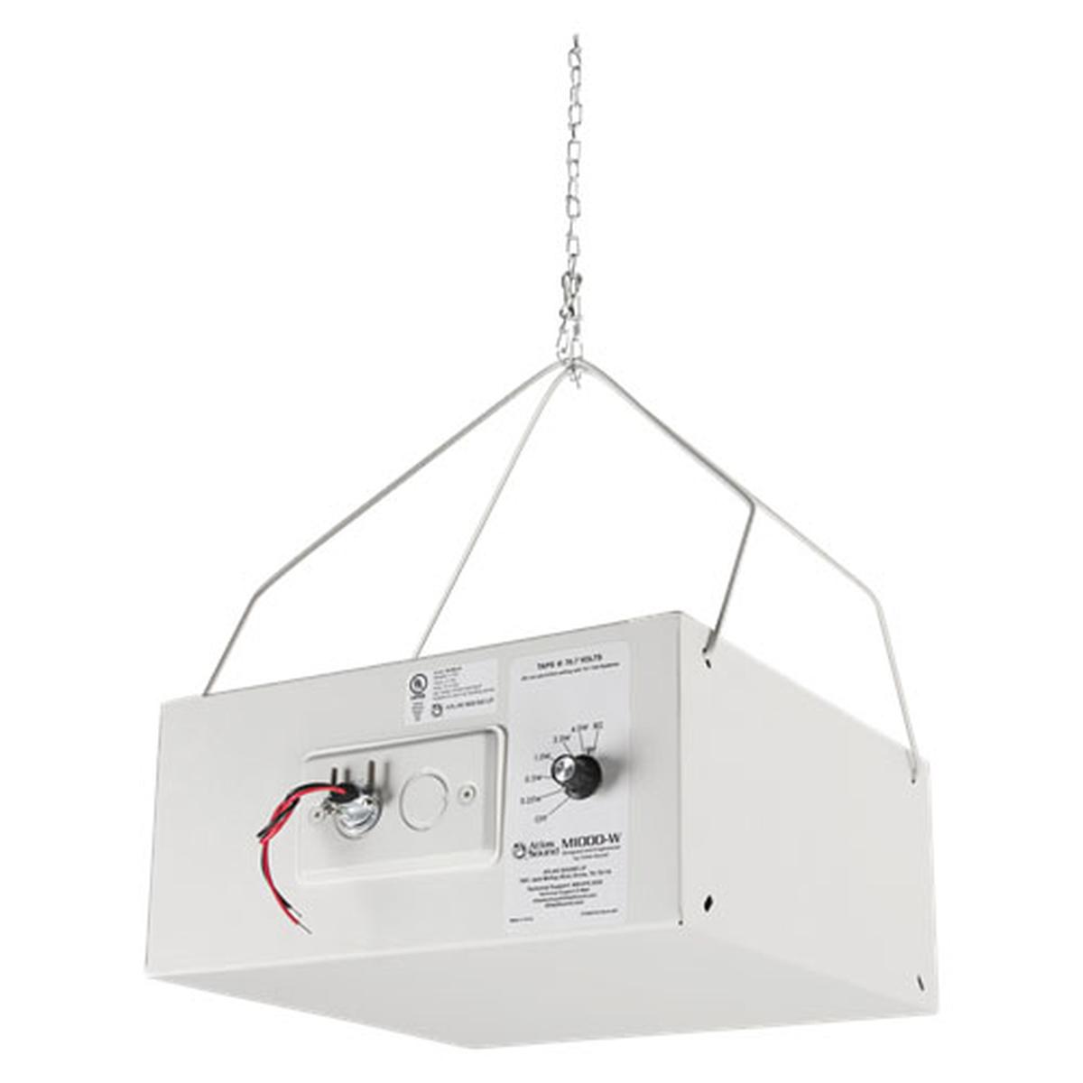 The exclusive Atlas Sound EZ hang brackets simplify installation. This innovative suspension system employs (2) collapsible plated hangers designed to allow for fast upward, downward, or side firing installation. The hangers are factory-installed on the device and fold flat for shipping. To satisfy most any local code requirement, the M1000-W includes an innovative cover containing both knockouts and a strain relief. This system will allow using rigid or flexible conduit (if required) and effortlessly accommodates "through" connections on the removable plate. UL 2043 listed for use in air handling spaces.Specifications