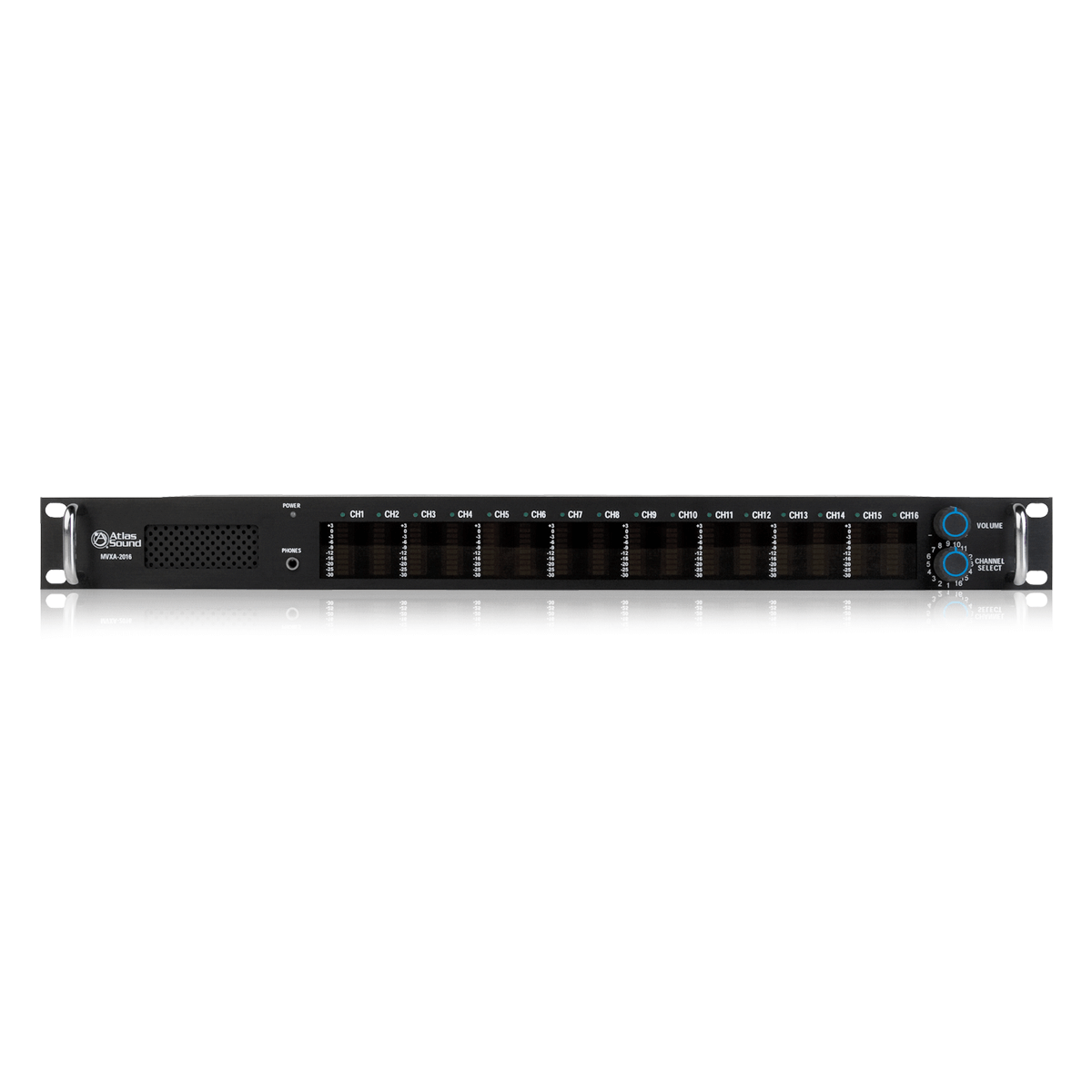 Atlas-Sound's MVXA-2016 monitor panel is an active device for aural and visual monitoring of sixteen different speaker and line level circuits in any combination. Superior single-circuit board design offers outstanding performance with easy visual assessment in an ultra-thin single rack unit chassis.