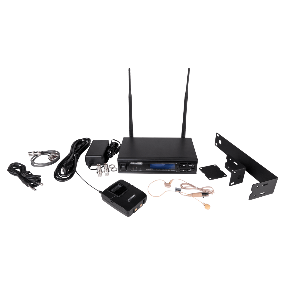 The AtlasIED MW100BP-OE is a complete wireless microphone kit that includes a wireless receiver (MWRCVR), beltpack wireless transmitter (MWBPT), and over ear microphone (MWOEM) as well as the necessary antennas, cables, and power supply for proper functionality in a variety of installations including classrooms, conference rooms, lecture halls, and live presentations. The MWRCVR receives signal from the MWBPT via the 25MHz frequency band, where any one of 100 usable frequencies can be assigned to MWRCVR and MWBPT, via patented 2-way technology that ensures quality of data transmission between the two units.
