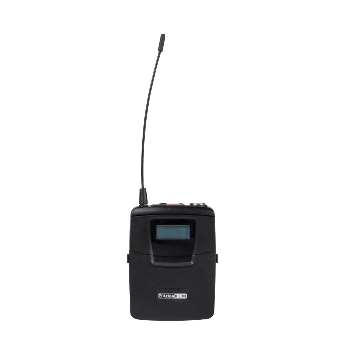 The AtlasIED MWBPT wireless belt pack transmitter is the ideal choice for a variety of applications ranging from classrooms and conference rooms to lecture halls and live presentations. The MWBPT works with either the MWOEM headset microphone or MWLM lavalier microphone. High and low impedance gain adjustments are included to ensure optimal pickup for a variety of applications. The unit is powered by either standard AA batteries or with NiMH rechargeable batteries (sold separately) allowing for up to 16 hours of usage. The unit operates on the UHF band and syncs to the wireless receiver, AtlasIED model MWRCVR, for connection to local amplification. The integrated LCD displays critical information regarding channel, frequency, and battery level.