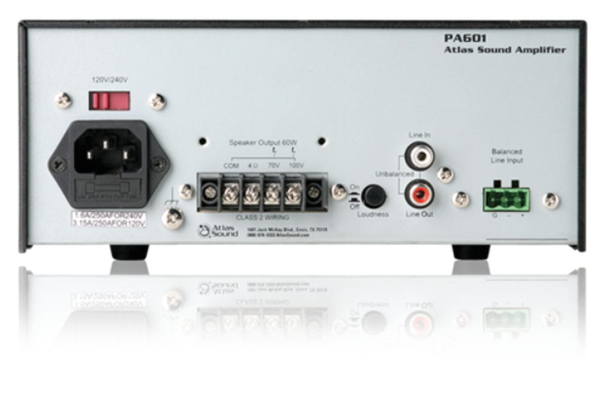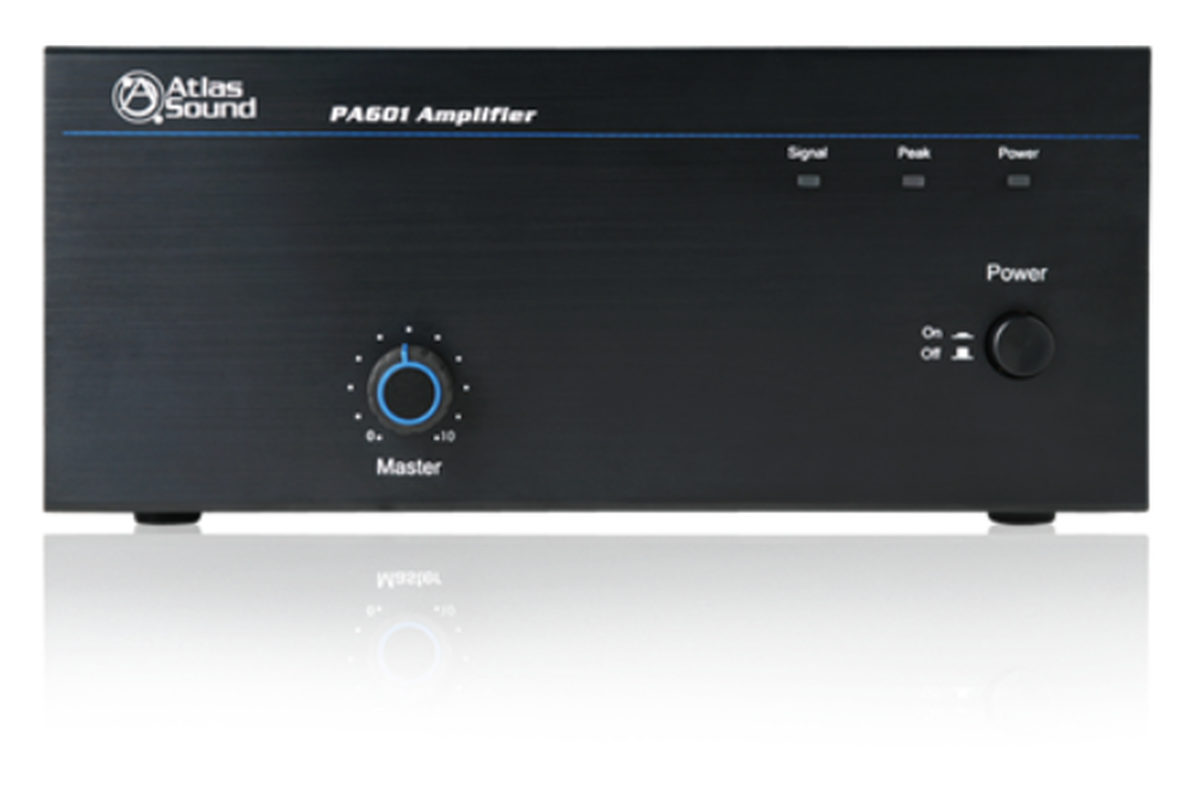 Atlas Sound's PA601 is a single-channel 1x1 power amplifier. This device features 1 balanced or unbalanced input and 1 unbalanced line output as well as a terminal block speaker output. The PA601 is a perfect fit in professional AV systems that require distributed business paging capabilities as well as those that use background music systems.