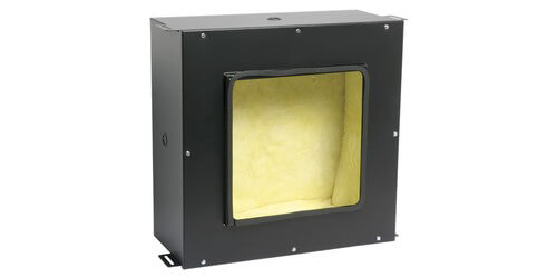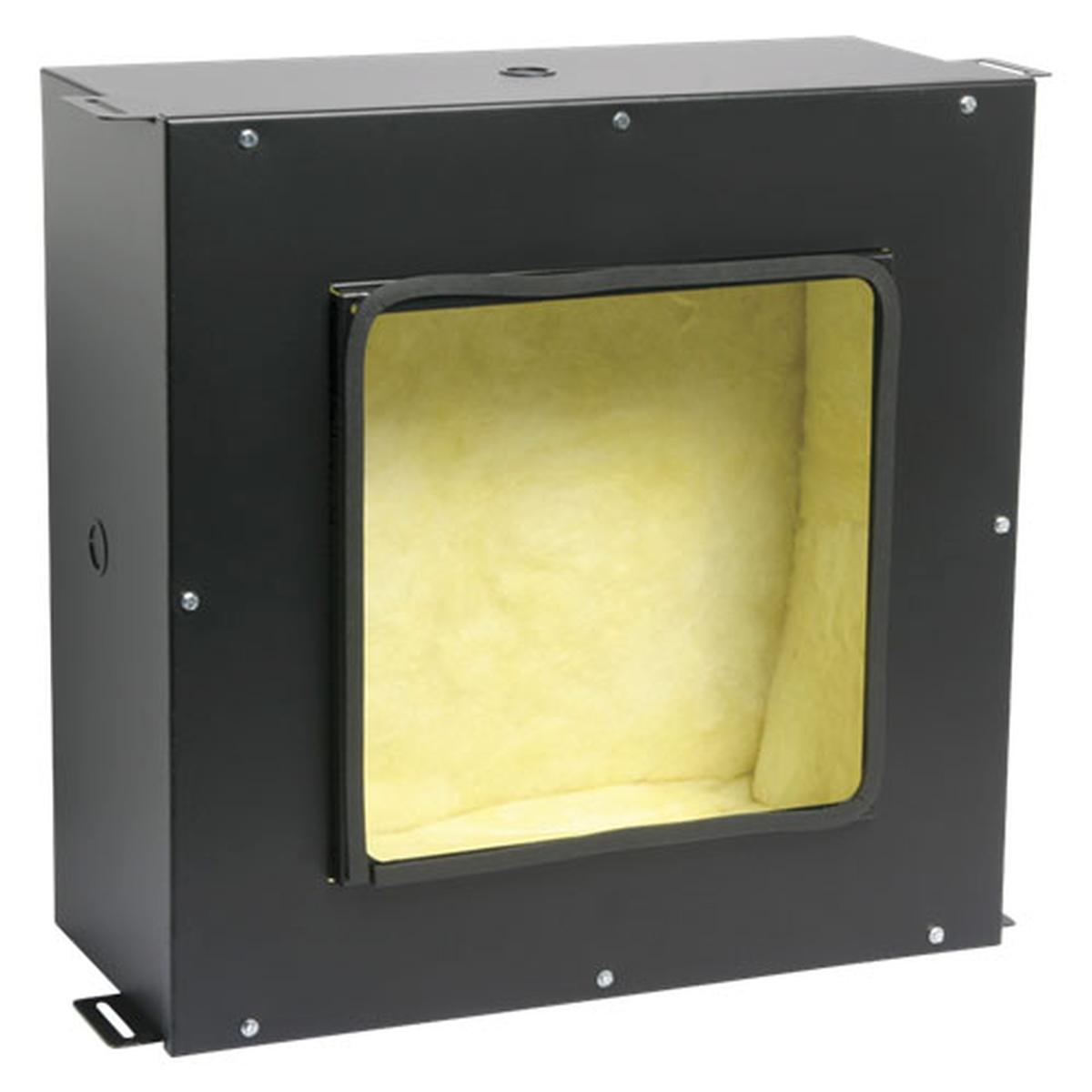 The "Q" Series enclosures are constructed of 18 gauge cold rolled steel. Compound 1/2" - 3/4" knockouts are furnished on all four sides. The front mounting panel of the enclosure is constructed of sturdy 18 gauge steel and incorporates the baffle mounting plaster ring. This panel is isolated by means of a foam gasket to prevent metal to metal contact. Two sets of slotted mounting tabs are welded on parallel sides to accept Model QR30 mounting channels (optional) for mounting the enclosure in the ceiling. These mounting tabs may also be used for any specific mounting technique developed by the installer. It is important that the sound contractor take particular note of the weight of these enclosures to determine suitable mounting procedures. The entire metal enclosure is finished in black textured epoxy.Specifications
