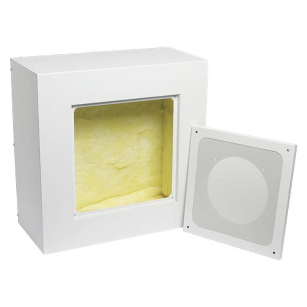 Q428-SA 8" Q Series Surface Mount Enclosure Square made by Atlas Sound. This Convenient assembly is 11/2 cu. ft. with 1/2" thick fiber board. Package includes above specifications and premounted baffle and included is recessed into the enclosure for flush appearance. Back plate is removable for installation ease. Finish is textured white epoxy