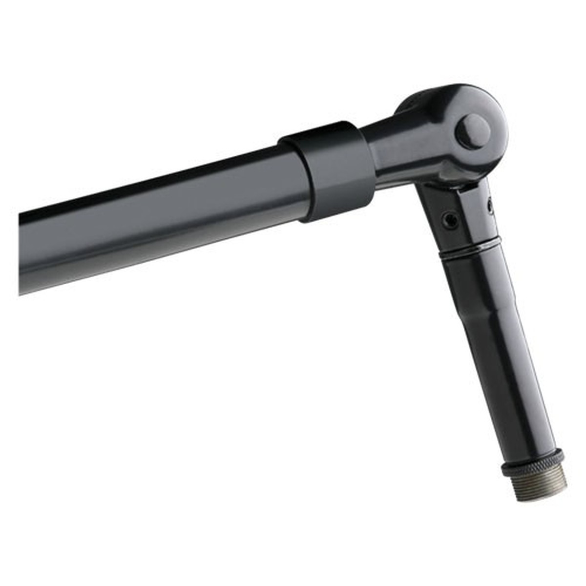 Two-piece horizontal boom assembly is 7/8" dia. cold rolled steel with a heavy-duty, die-cast, gyromatic swivel and an adjustable 6-lb. counterweight for precise and secure orientation. Tubing terminates with an adjustable mic holder swivel with standard 5/8" - 27 thread to accept all microphones, holders, and adapters. Guide clips are supplied for cable attachment. This is a very economical studio boom is especially suited for small studio/broadcast applications and for stage miking of drums and percussion instruments. Unit features a 60" long, two-piece horizontal boom assembly constructed of steel tubing. Boom includes a Performer Series swivel clamp and an adjustable 2-lb. counterweight for effortless boom arm orientation. Tubing also incorporates a 90 angled end for optimum microphone positioning and terminates in the standard 5/8" - 27 thread to accept all microphones, holders, and adapters.Specifications