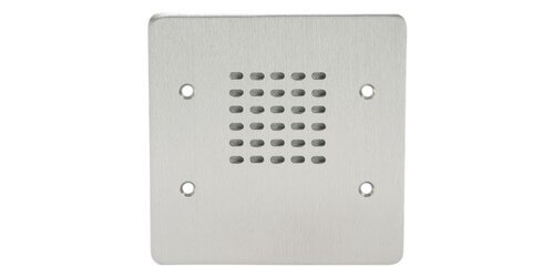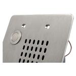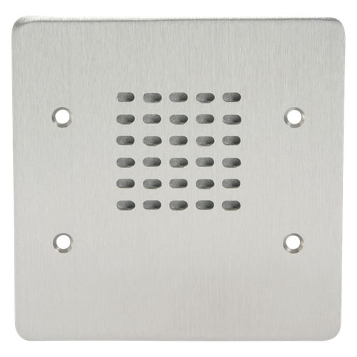 Stations are equipped with a 21/2" dia. loudspeaker to deliver clear voice and signal transmission while the phenolic resin impregnated, moisture-proof cloth cone provides durable performance. Model numbers indicating "PB" include a vandal-proof push-button call switch for installation where call origination is a required function or a desired adjunct to security. "PB" models feature a heavy-duty, momentary action push-button with a 3A at 120 VAC/1.5A at 250 VAC contact rating, mounted to 11-gauge stainless steel face plate. The face plate mounts standard 2 & or 3-gang E.O. boxes with any counter sunk 6-32" mounting screw. Lead wires are 5" . Switch is single pole, single throw, normally open. Push button assembly is constructed of nickel plated brass and sealed against moisture with a classification of 1P65. It is a vandal-resistant push switch intercom accessory mounted to a single gang size stainless steel plate. Utilize assembly in conjunction with VPCS 2- and 3-gang stations or as a stand alone signaling device when a separate or remotely located call origination button is desired.Specifications