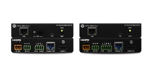 The AT-AVA-EX100CE-BP-KIT includes both transmitter and receiver endpoints. Compact enclosures and included brackets allow the devices to be surface mounted in furniture or behind a display. The AT-AVA-EX100CE-BP-KIT delivers a cost-effective solution for extension of video, audio, Ethernet, control, and bidirectional power at resolutions up to 4K/UHD.