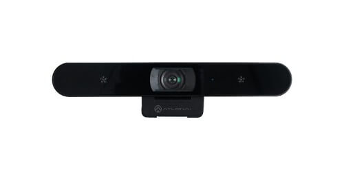 The Atlona Captivate AT-CAP-FC110 is an enterprise-grade ePTZ camera ideal for use in video conferencing, distance learning, and other applications in huddle rooms and small to medium-sized meeting spaces. This camera features a USB-C interface for video and audio. The CAP-FC110 can be used with the Omega Series, AT-USB-EX100-KIT, and OmniStream, or interfaced directly with a PC. This camera offers a 110° wide horizontal field of view and features electronic pan, tilt, and zoom capabilities, as well as an auto-framing functionality that reframes the camera based on detection of up to six participants. The CAP-FC110 delivers high-quality imaging with video resolutions up to 4K @ 30 Hz, and features a 2-microphone array with a 5 meter (16 foot) audio pickup range. It can be installed on a flat-panel display with an adjustable mounting clip, and features a 1/4-20 UNC standard screw thread for a tripod or other camera mount.