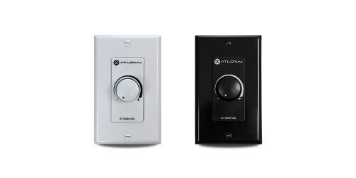 The Atlona AT-GAIN-VOL is a volume control wallplate for use with the AT-GAIN-M50-LZ mixer amplifier. It provides a convenient, easy-to-use manual interface for controlling audio levels of the amplifier. Volume control range is from no audio (mute) to maximum output level. The GAIN-VOL is housed in a US one-gang enclosure intended for wallplate openings and includes interchangeable black or white trim kits.