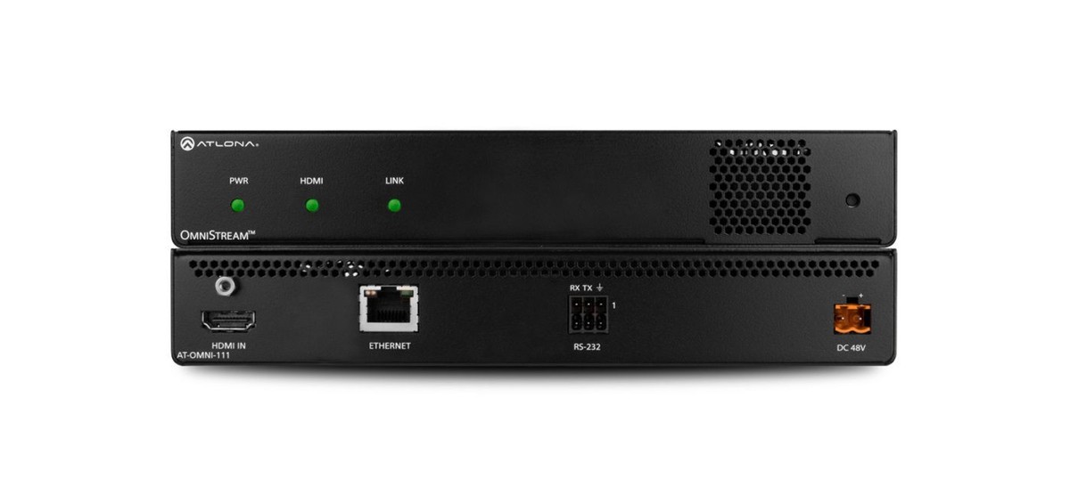 The Atlona OmniStream AT-OMNI-111 is a single channel networked AV encoder with the ability to route a single independent channel of encoding for one HDMI source up to 4K/UHD, plus embedded audio and RS-232 control. Part of Atlona's AV over IP product family that has been designed for distributing 4k video, audio, and control over a standard 1 Gigabit network. This product was designed to deliver the performance and dependability of traditional AV distribution, with virtually unlimited scalability, security, and cost efficiency of integrating over IP networks. Atlona has engineered the OmniStream from the ground up using several industry-exclusive capabilities including high density encoding and decoding, redundant AV networks and stream, secure content distribution, network error resilience, quality 4K/UHD @30Hz 4:4:4 resolutions support and compression with extremely low latency, and audio distribution. Being developed to address many technical challenges associated with converging video onto IP networks, the OmniStream was to integrate easily into a new or existing Gigabit network infrastructure while delivering the same reliability, performance, and image quality that is expected of a baseband or HDbaseT video system.