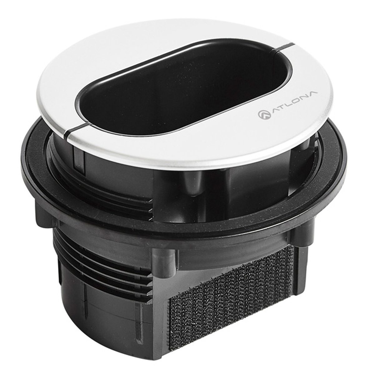 Atlona introduces the Pocket 3H, a cable access enclosure. This sleek and discrete cable management port houses up to three cables, and it can be installed into a meeting table or any other surface up to 2 inches deep. This cable well makes it easy for presenters to identify which connections are available in the meeting room. In addition to meeting rooms, the Pocket 3H is a great addition to larger spaces like auditoriums, large classrooms, and lecture halls.