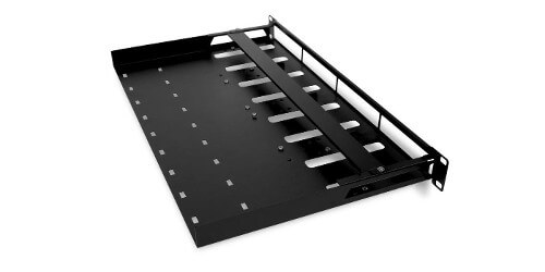 - 1U, full rack width shelf for up to four quarter rack wide devices
