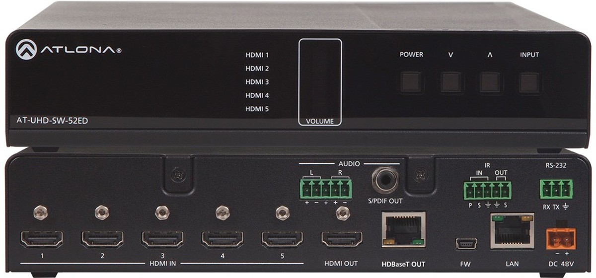 The Atlona AT-UHD-SW-52ED is an exceptional value with numerous features including dual mirrored outputs with 1 HDMI and 1 HDBaseT, paired with a 10 year warranty and you have a long lasting high quality switcher.