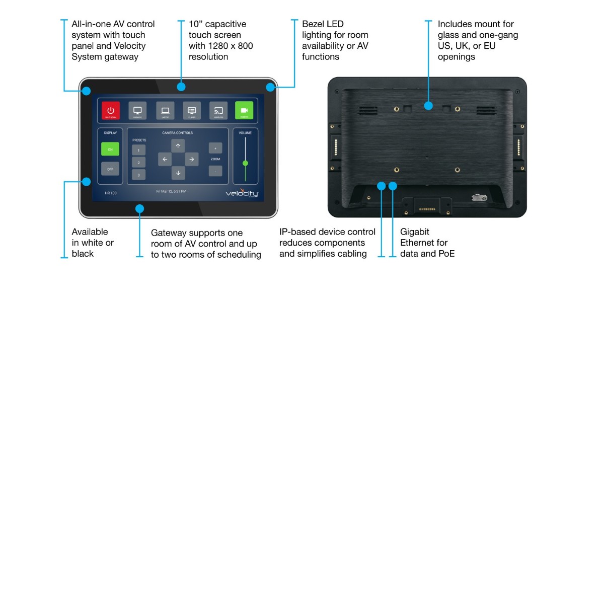 - Integrated Velocity gateway supports one room of control for up to 24 devices and two scheduling panels