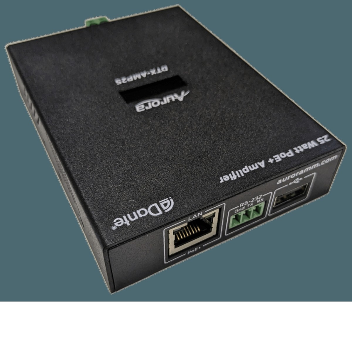 The DTX-AMP25-M is a 25-Watt PoE+ Dante amplifier allowing audio distribution of small to very large scale. The small form factor and light weight allows it to be mounted just about anywhere. The 4/8 Ohm out can drive 2 speakers in parallel saving cost. It also features an OLED for IP Address and other status information for better setup and serviceability.