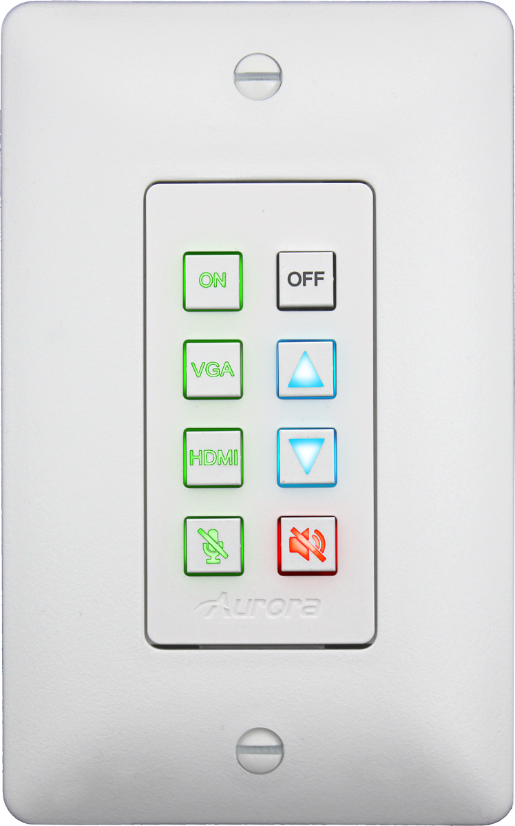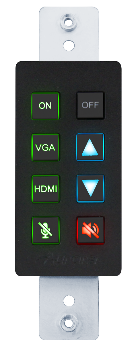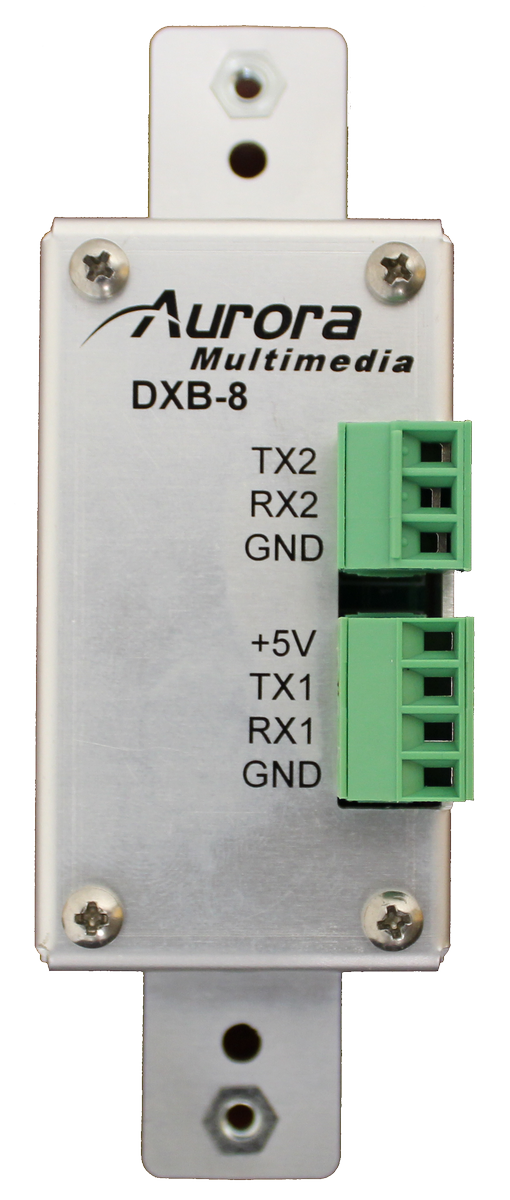 The Aurora DXB-8 is a 8 button single gang wall plate, it features 2 RS-232 ports. It can be used with most RS-232 devices but also shines when used with the DXW-2 series of multi-format auto switching wall plates. The buttons are backlit so to the can be easily seen, and the plate can be installed almost anywhere with a depth of only .48".