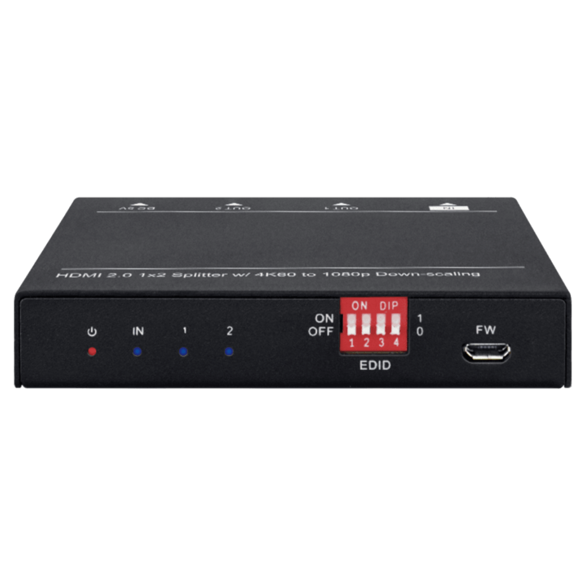 The DXE-122A-DS 1x2 HDMI 2.0A 4K Splitter with Auto EDID Management provides one of the most advanced HDMI splitter solutions by which the Ultra High Definition video and high quality audio can be transmitted to multiple locations without losing quality. The DXE-122A-DS supports all 3D formats and true 4K2K video. EDID management can be one of the most important capabilities to a splitter. Taking it one step further Aurora has added the ability to customize EDID for complete EDID emulation. This allows full control over the source and what it will be allowed to do. The DXE splitter have firmware upgrade capability via the USB port ensures compatibility now and in the future. With 48bit deep color video and high definition audio support, the DXE-122A-DS is suitable for high quality HDMI broadcasting, conference room, digital signage and education applications.