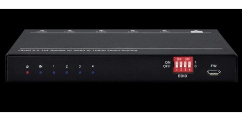 The DXE-142A-DS 1×4 HDMI 2.0A 4K Splitter with Auto EDID Management provides one of the most advanced HDMI splitter solutions by which the Ultra High Definition video and high quality audio can be transmitted to multiple locations without losing quality. The DXE-142A-DS supports all 3D formats and true 4K2K video. EDID management can be one of the most important capabilities to a splitter. Taking it one step further Aurora has added the ability to customize EDID for complete EDID emulation. This allows full control over the source and what it will be allowed to do. The DXE splitter have firmware upgrade capability via the USB port ensures compatibility now and in the future. With 48bit deep color video and high definition audio support, the DXE-142A-DS is suitable for high quality HDMI broadcasting, conference room, digital signage and education applications.