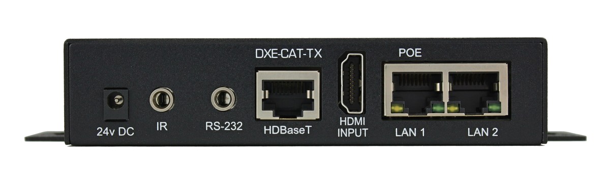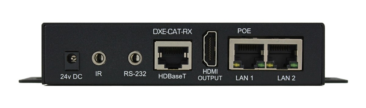 The Aurora DXE-CAT-S2-4K is an HDBaseT transmitter and receiver kit that can send your video connection as well as power, Ethernet, bi-directional RS-232, and IR up to 600'. The transmitter is HDCP compliant, supports 3D, resolutions up to 4K30, and includes a mount for wall or rack mounting. A unique feature of this model is that it has a PoE port so power can be injected from a PoE switch, this will send power to both the receiver and transmitter. All the connections are on one side with LED lights on the front, the DXE-CAT-S2-4K is easy to install and includes 1 power supply.