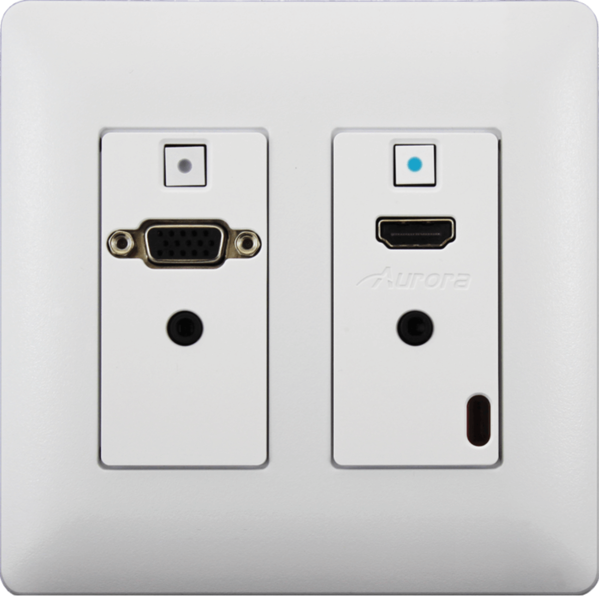 The DXW-2 is a 2 gang multi-input Decora style wall plate with HDBaseT CAT extension. Its ability to convert VGA (YPbPr, S-Video, Video) with audio to HDMI locally and transmit the signal up to 600ft sets this unit apart from the competition. The sources are selectable with the buttons on the wall plate, DXB-8 1 gang 8 button panel, or remotely via RS-232 commands sent through the matching receiver device (DXE-CAT-RX, DXM Matrixes, etc).