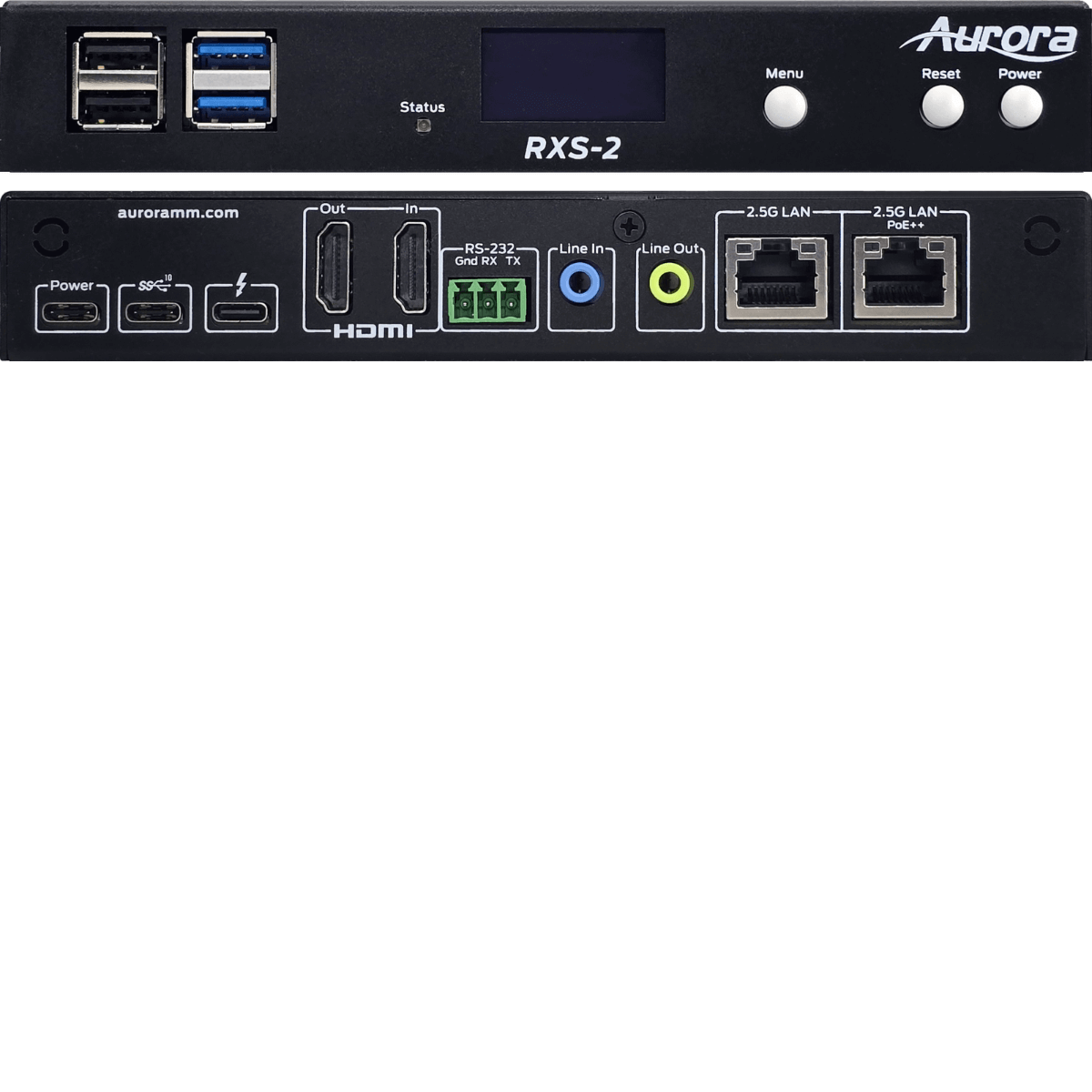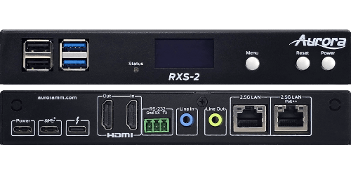 The Aurora RXS-2 is a 14th Generation Intel PC designed for the AV industry and more. Its small size allows for mounting behind displays and under tables. It can also be rack mounted as two in a 1RU or 12 in 5RU. Available in i5 & i7 with 1TB SSD. The RXS-2 has al 4K60 4:4:4 HDMI output, 40G Thunderbolt, and one HDMI input for capture of 4K signals. Dual 2.5G LAN, USB 3.2, and RS-232 ports make it perfect for unified communications and digital signage applications. Sometimes it is the little things that make a big difference and that is where the OLED comes in. The front OLED will display IP address, MAC address, serial number, and more which is great for servicing. Finally, a PC made to simplify installations with a powerful processor and features beyond a typical PC.