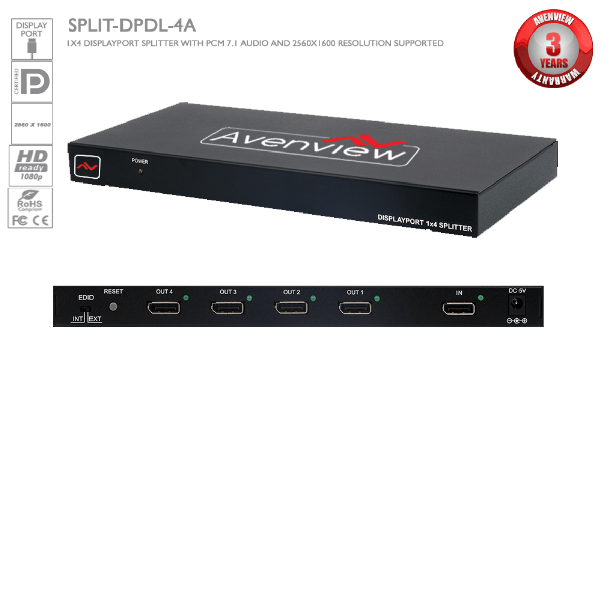 1X4 DisplayPort with PCM and 2560X1600 Support