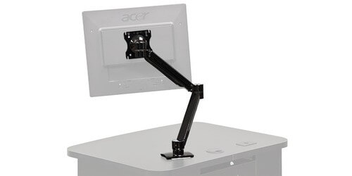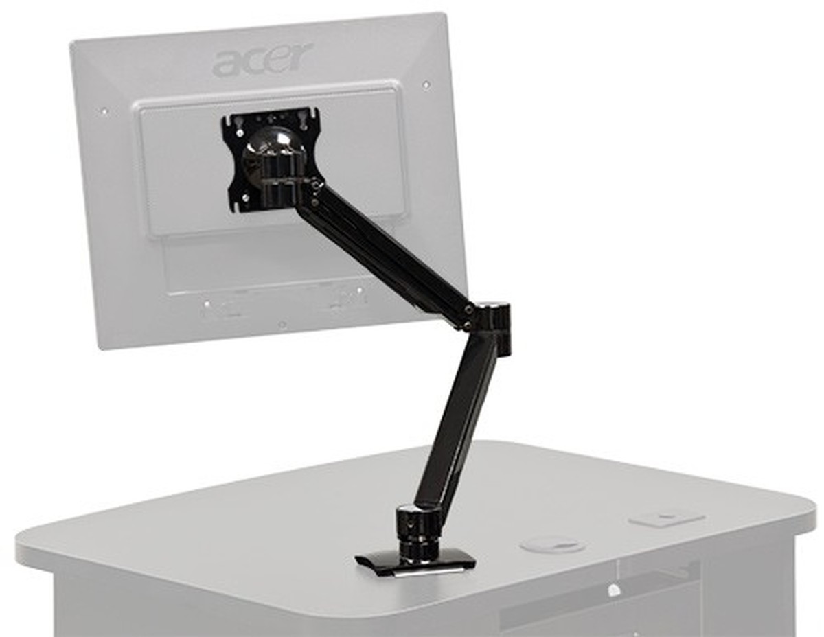 The AVF C900S is an adjustable monitor arm designed to hold 15" to 24" monitors. It is fully adjustable to get into the exact position you need, it provides up to 26" of reach and 13" of height and 360 degrees of swivel. The C900S is ideal for podiums and mobile racks and offers all the features that you need for a perfect presentation.