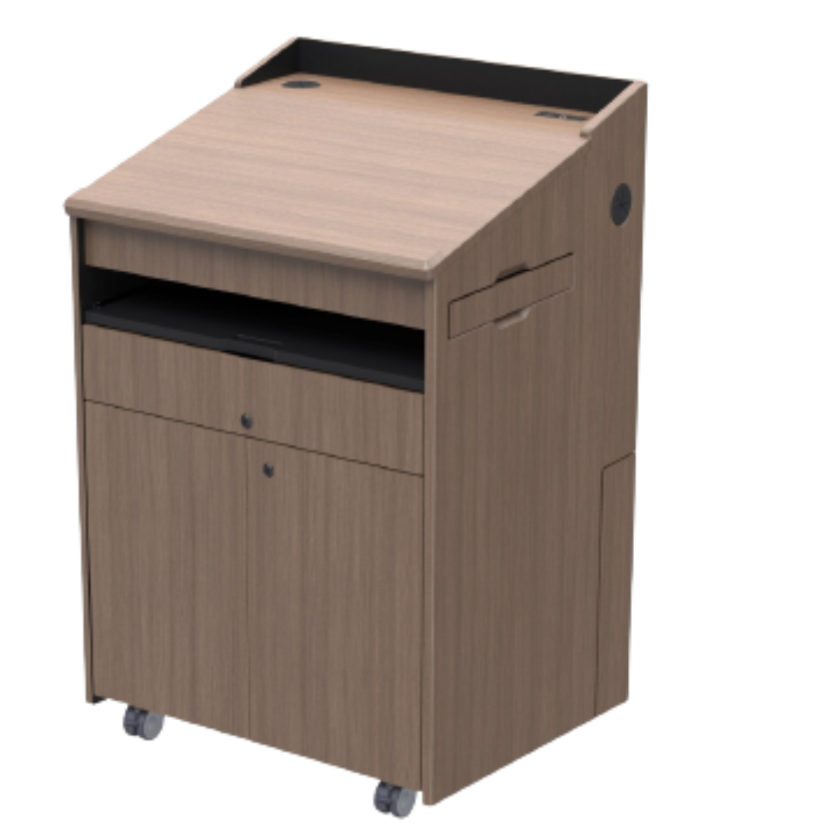 The LEX230 is a Multimedia Lectern with a compact and ergonomic design in Thermowrap finish. Suitable for Schools and Universities, this mobile Lectern provides plenty of room and convenient storage for today's technology.