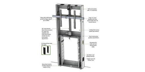 The LFT7000WM is heavy duty & wall anchored stand with multiple display mount options. It is a floor load and wall anchored design. Ideal for environments where adjustable height or ADA is required.