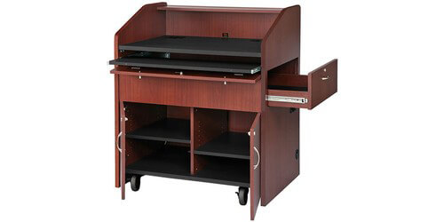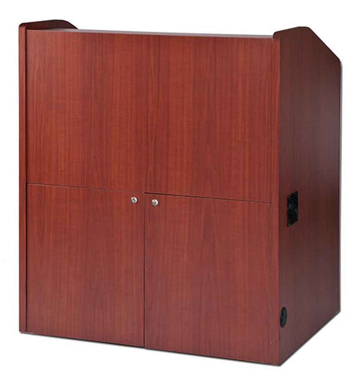 Best of all the podium ships full assembled and ready to be used. We offer free ground shipping to the continental USA however if you need a lift gate during delivery there is an additional $90 fee, please mention that you need this in the order comments during checkout. If you need help customizing an audio video table box for the podium please call us at 888-999-3759, click here to email us, or via Live Chat.