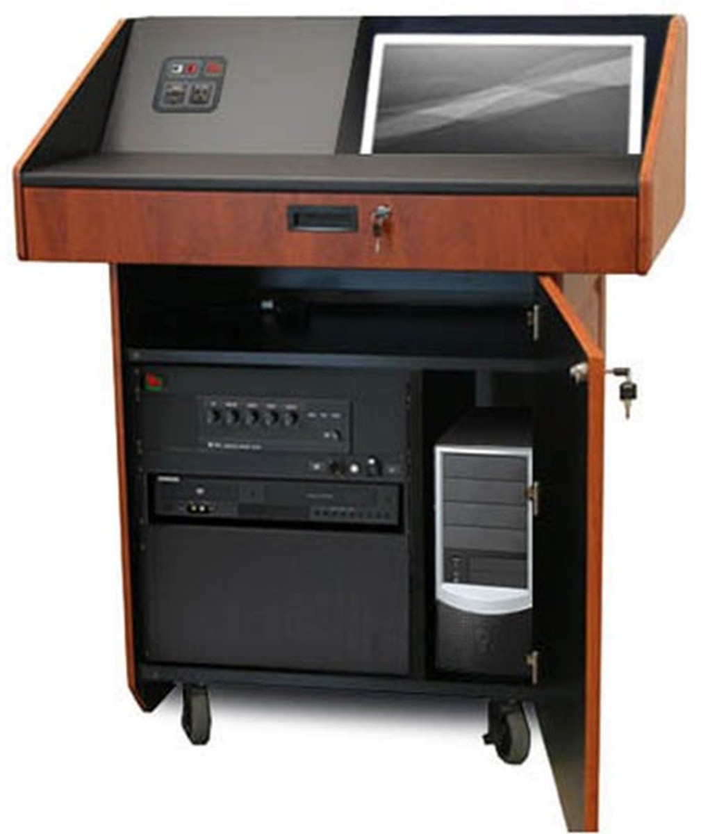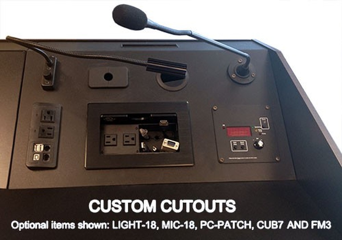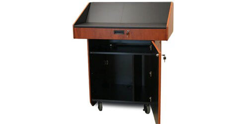 Best of all the podium ships full assembled and ready to be used. We offer free ground shipping to the continental USA however if you need a lift gate during delivery there is an additional $90 fee, please mention that you need this in the order comments during checkout. If you need help customizing an audio video table box or integrating any components into the podium please call us at 888-999-3759, click here to email us, or via Live Chat.