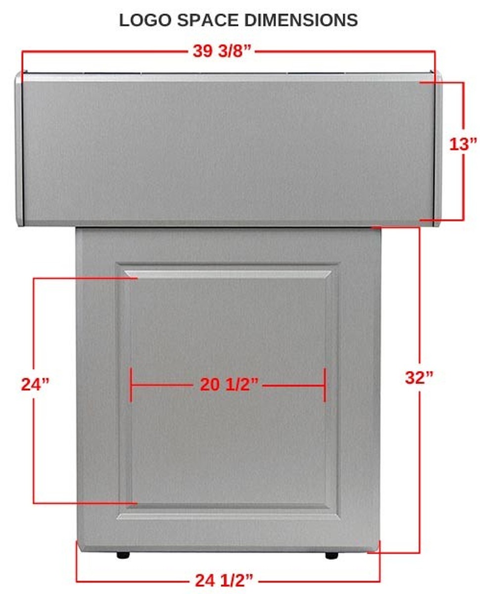 - Top counter size: 39.5" wide by 14.25" deep