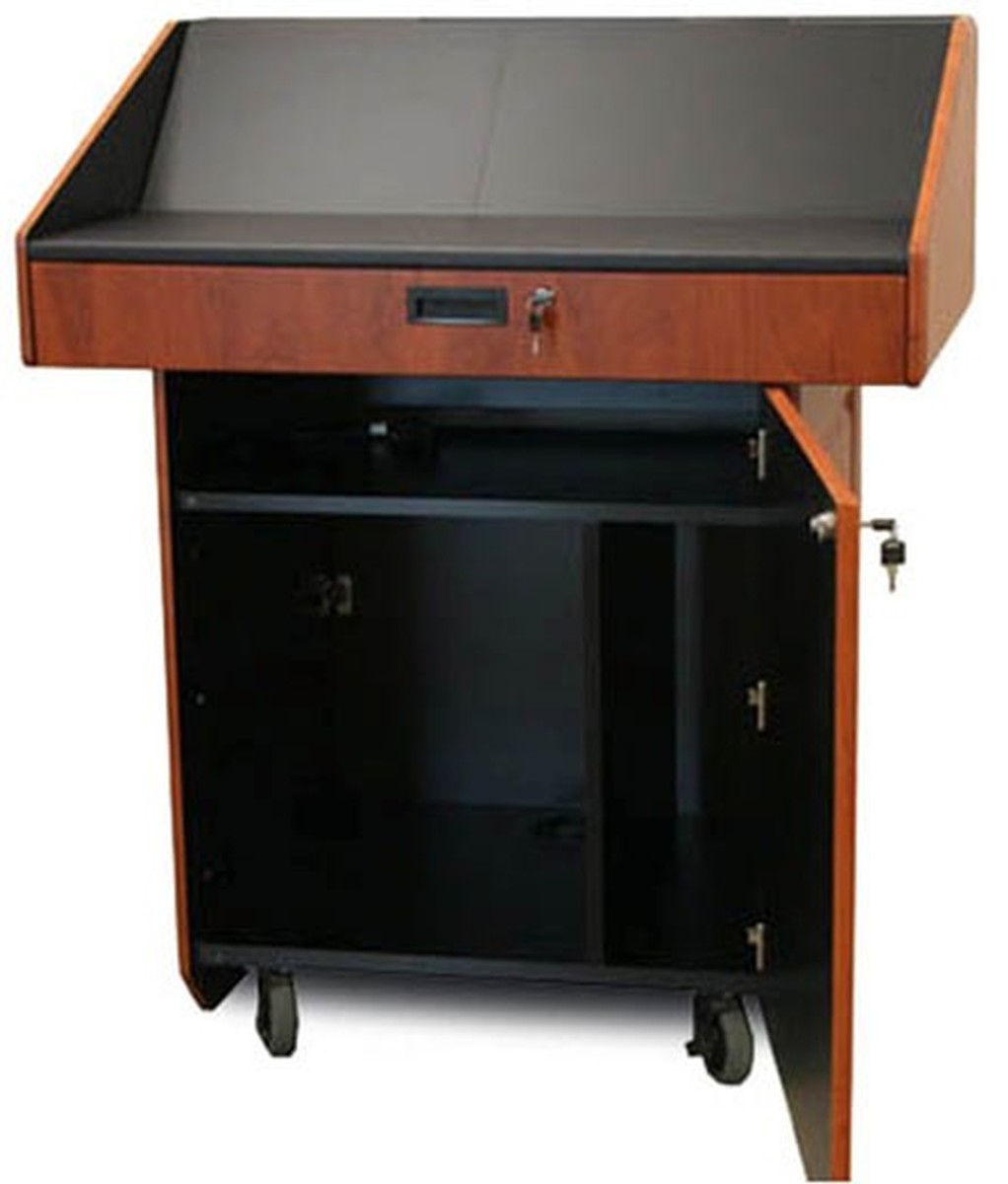 Mobile Executive Podium with Rack & Keyboard Pull Out- 12 Colors