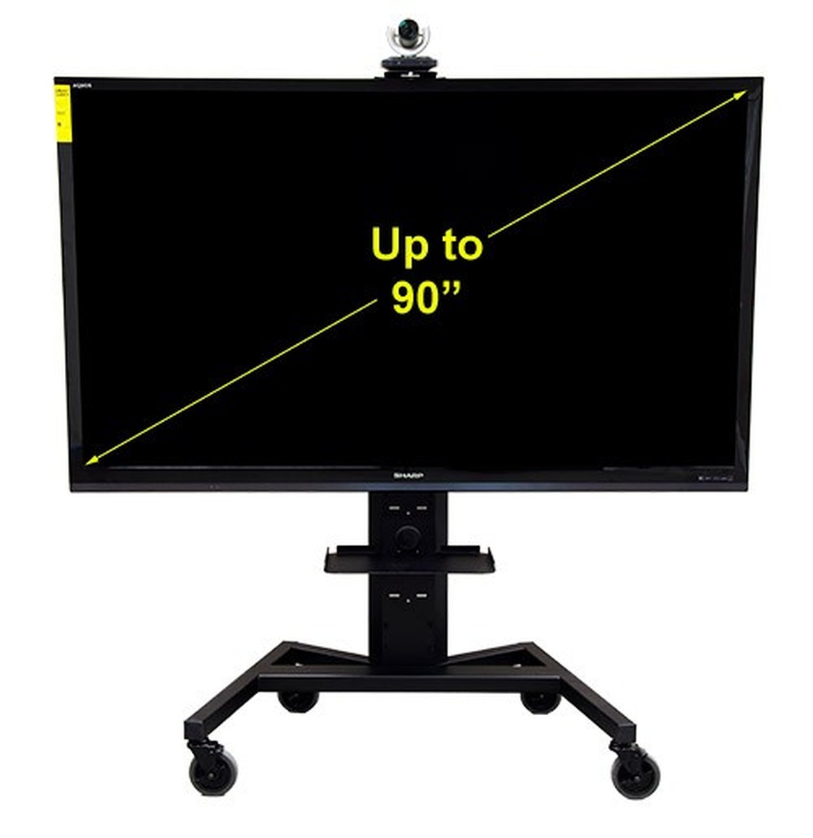 Mobile TV Stand w/ Shelf & Camera Mount, Holds 50" to 90" Display