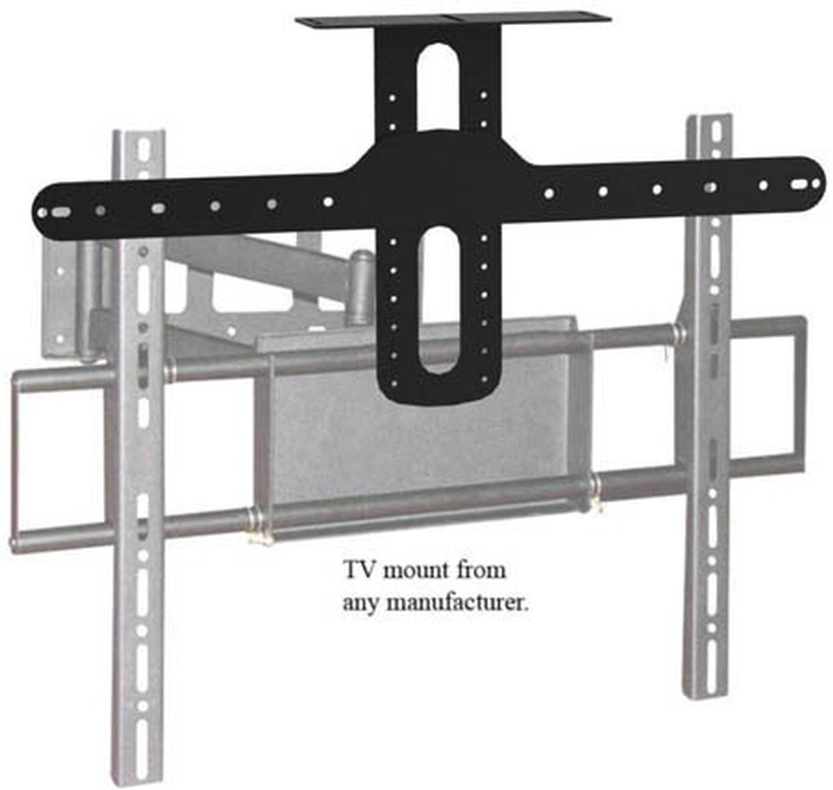 The AVF TVCB is a camera bracket that attaches to your TV, whether it is wall mounted or on a tabletop. It fits most 32" to 55" TV's and some even larger, it accommodates TV's that have up to a 700mm VESA width. It is made of a durable 11 gauge steel that is black powder coated. All the necessary mounting hardware is included for an easy installation. Mount your camera in the perfect spot above your TV with an easy to install and nice looking camera bracket.