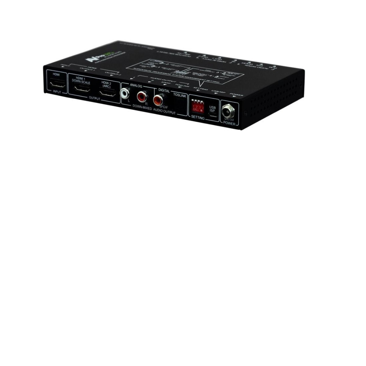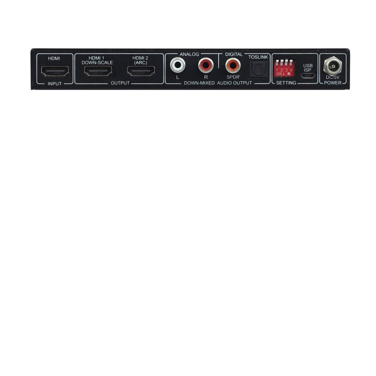 If the connected display supports ARC (Audio Return Channel), and has it enabled, then this unit can extract the ARC audio and output it via all available audio outputs. Both the input and output HDMI ports support 4K UHD resolutions up to 4K@60Hz (YUV 4:4:4, 8-bit).