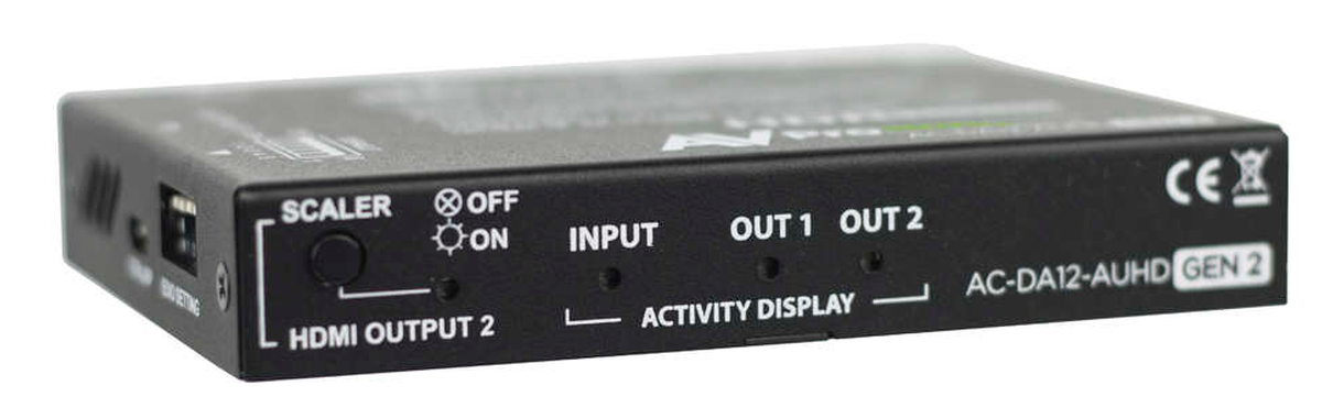 The AC-DA12-AUHD-GEN2 offers the highest available bandwidth, ensuring, even at higher resolutions, maximum stability and performance in distributed HDMI systems. A part of the advanced EDID management on board is the ability to choose from 16 different settings, including Cascade Mode. Cascade Mode gives you the option to string together multiple display devices through their inputs and outputs now turning this 1X2 in a potential 1X50 AUHD distribution amplifier. Being designed for cascading this DA relieves all concerns of making several "hops" in your system, enabling "cascade mode" gives true plug-and-play compatibility.