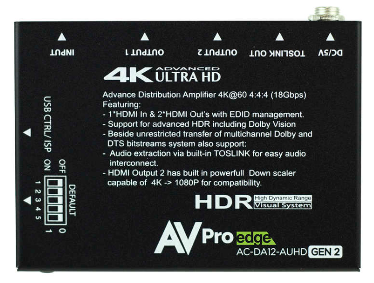 The AC-DA12-AUHD-GEN2 from AVPro Edge, a new world in Distribution Amplifiers, and belonging to the first true 18Gbps DA family. For the High End Integrators out there this an amazing time for high-bandwidth signals, and for HDMI 2.0a, and HDR support. Featuring true 4K60 at 4:4:4 support and in the future the potential for up to 8K, you will finally be able to bring this technology to your installs, and actually distribute it, with proper HDMI handshaking.