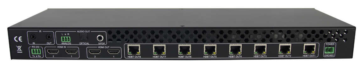 - Outputs: 2x HDMI, 8x HDBaseT